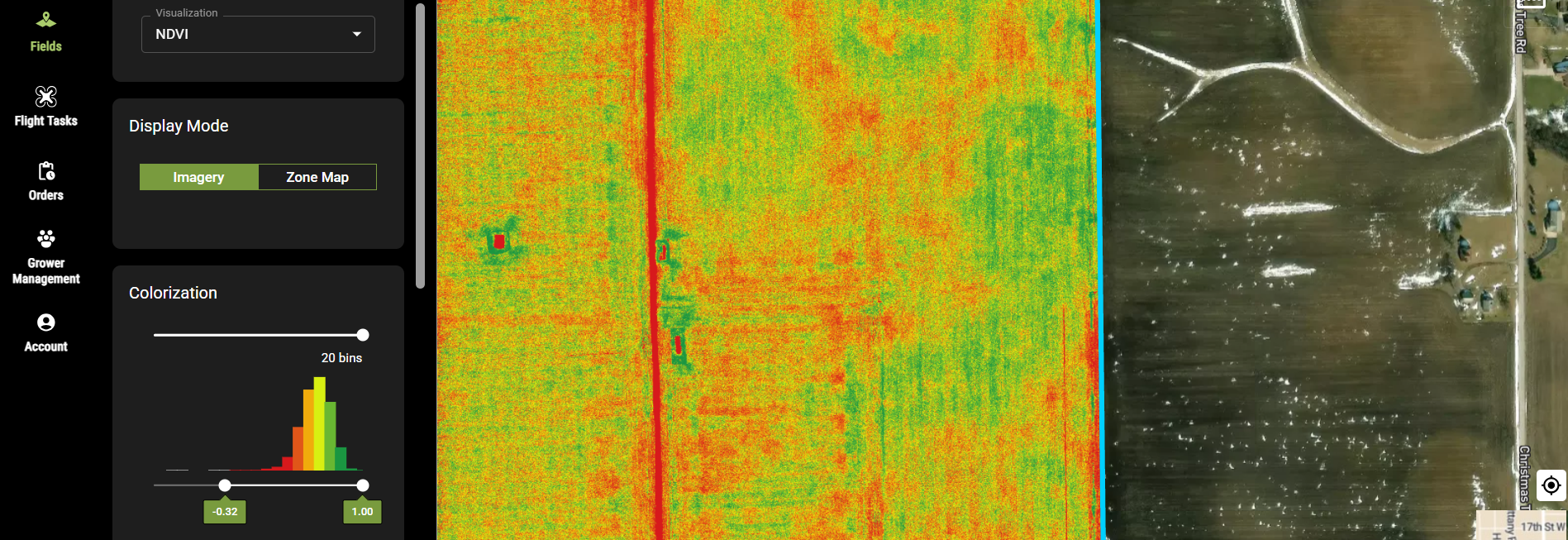Order a multispectral mosaic in FieldAgent Desktop including images of your reflectance panel and receive a 5-band TIFF with calibrated reflectance for each band. Radiometric Processing can also be performed with Sentera Radiometric Correction Software and third party processing software.
